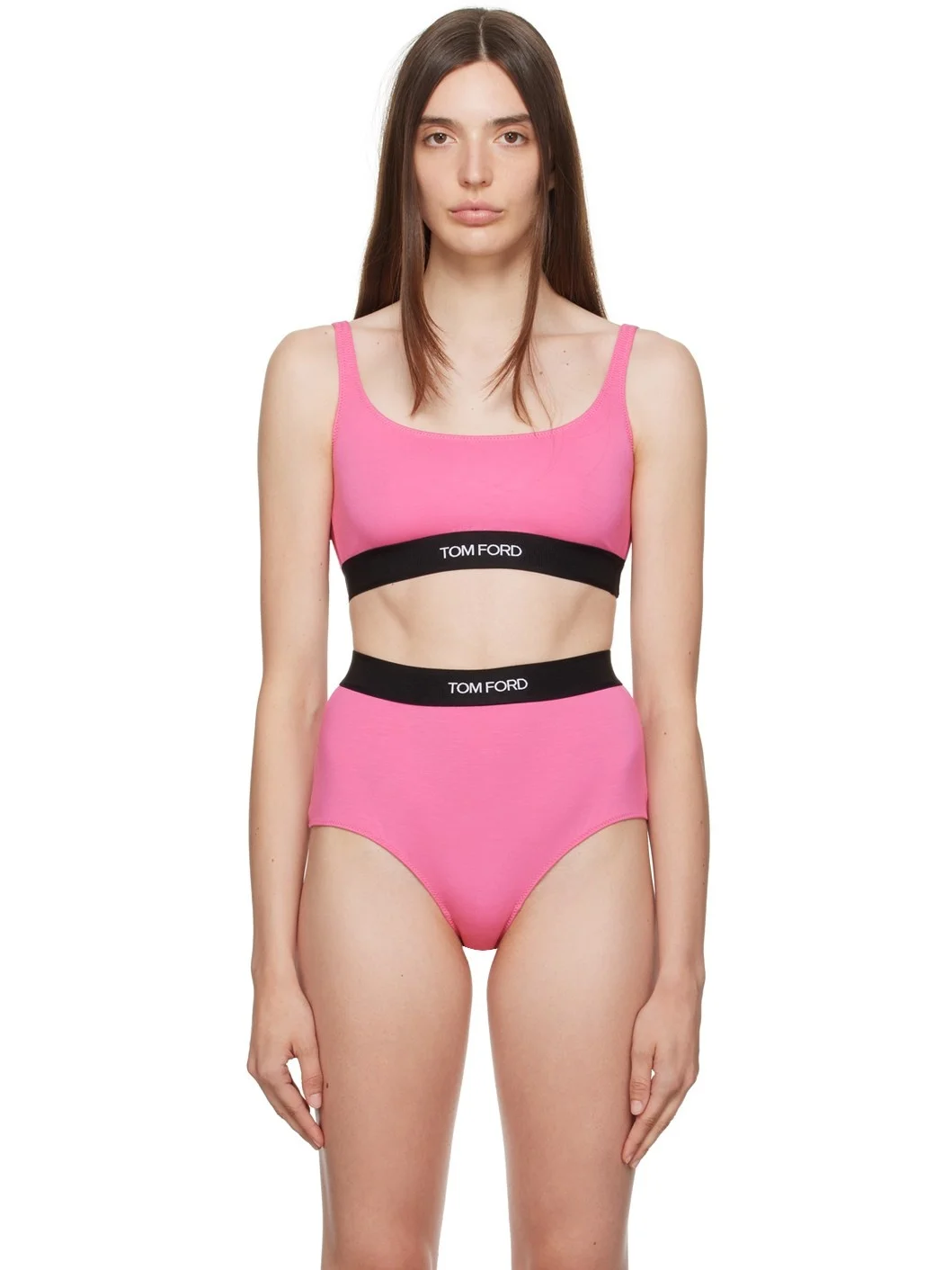 Stretch modal jersey bra. · Scoop neck · Jacquard logo at elasticized hem · Fixed shoulders straps · Partial lining Supplier color: Rosebloom Body: 97% modal, 3% elastane. Trim: 82% polyester, 9% elastane, 9% polyamide. Made in Italy 232076F073000