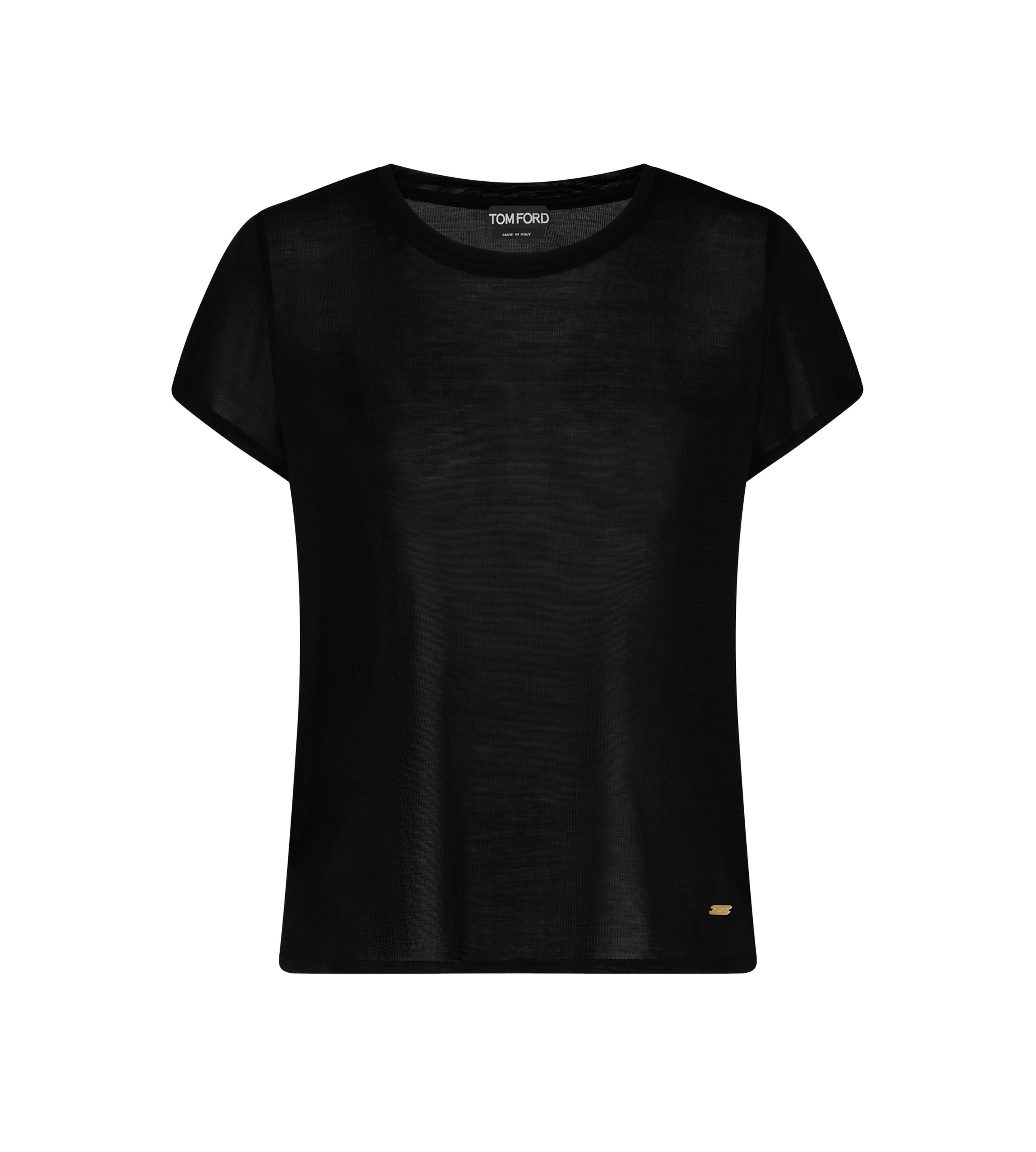 - SHORT SLEEVE T-SHIRT - CREWNECK - TOM FORD LOGO METAL PLAQUE ON FRONT LEFT SIDE - AMBER VINTAGE GOLD METAL HARDWARE - CRAFTED IN MICRO-RIB SILK JERSEY - 100% SILK