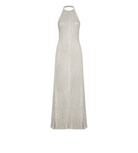 - LONG HALTERNECK DRESS WITH OPEN BACK - TOM FORD METAL PLAQUE AT THE BACK - METAL HOOK FOR NECK CLOSURE - CRAFTED IN LUREX RIB - 14 GAUGE - 64% POLYESTER 33% METAL 2% POLYAMIDE 1% ELASTANE