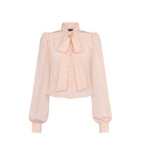 - LONG SLEEVE GATHERED LAVALLIERE BLOUSE - LONG NECK TIE - PUFFED SLEEVE - ELASTICATED DETAIL ON THE WAIST - BARREL CUFFS - COVERED BUTTONS ALONG THE FRONT AND ON THE CUFFS - CRAFTED IN SMOOTH SILK CREPE DE CHINE - 100% SILK - MADE IN ITALY