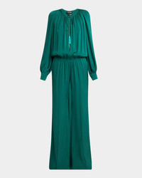 Long-Sleeve Gathered Viscose Crepe Cady Jumpsuit