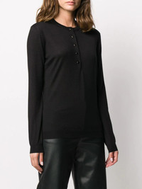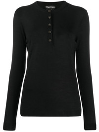 long sleeve polo shirt How much are you influenced by someone else's opinion? Made from a black cashmere-silk blend, this long sleeve polo shirt from TOM FORD is such a brilliant idea, that the more we (mentally) see you with it on the more we're in love. Just a thought. Featuring a ribbed round neck, a ribbed hem and cuffs, a straight hem and an enamelled front button placket. Made in Italy Composition Silk 100% SIZE & FIT Model measurements Height 5 ft 9 in(1.75 m) Bust/Chest 32.67 in(83 cm) Hips 36.22 in(92 cm) Waist 24.8 in(63 cm) FittingInformation This piece fits true to size. We recommend you get your regular size Cut for a relaxed fit Made with a mid-weight fabric Washing instructions Dry Clean Only