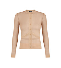 - LONG SLEEVE KNITTED CARDIGAN - CREW NECK - SHEER CARDIGAN WITH SOLID PLACKET AND COMPACT VISCOSE CHEVRON DETAIL - MOTHER OF PEARL BUTTONS ALONG FRONT OPENING - CRAFTED IN ENGINEER INTARSIA VISCOSE - 18 GAUGE - 76% VISCOSE 24% POLYAMIDE - MADE IN ITALY