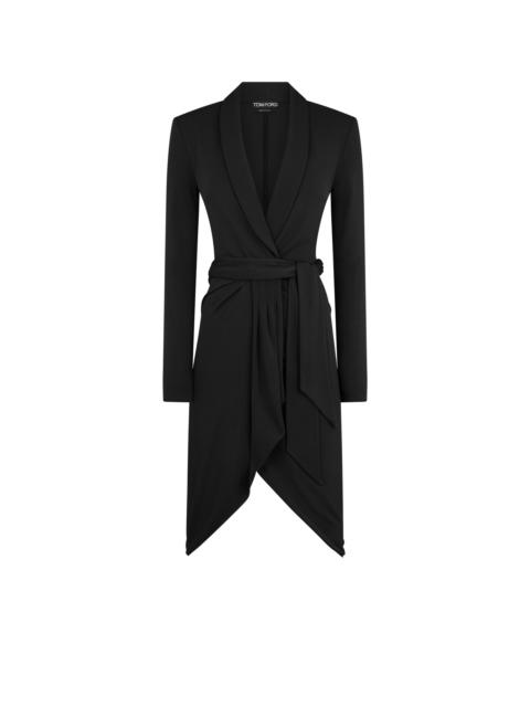 - LONG SLEEVE WRAP DRESS - DEEP V-NECK - WRAP CLOSURE AT THE WAISTLINE WITH A COVERED SNAP BUTTON - FABRIC AT THE NECKLINE FOLDS OVER TO FORM A SHAWL COLLAR - SELF-FABRIC BELT WITH LOOPS AT THE WAIST - STRUCTURED SHOULDER PADS - CRAFTED IN VISCOSE CREPE JERSEY - 100% VISCOSE