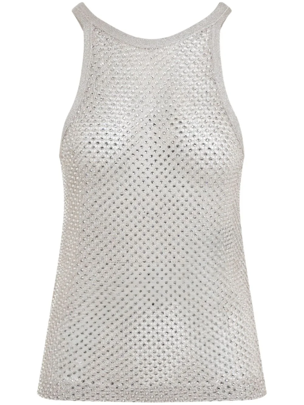 crystal-embroidered racerback tank top Highlights - Light beige - Crew neck - Sleeveless - Straight hem Imported Composition Viscose 48%, Polyester 42%, Metallic Fibre 10%