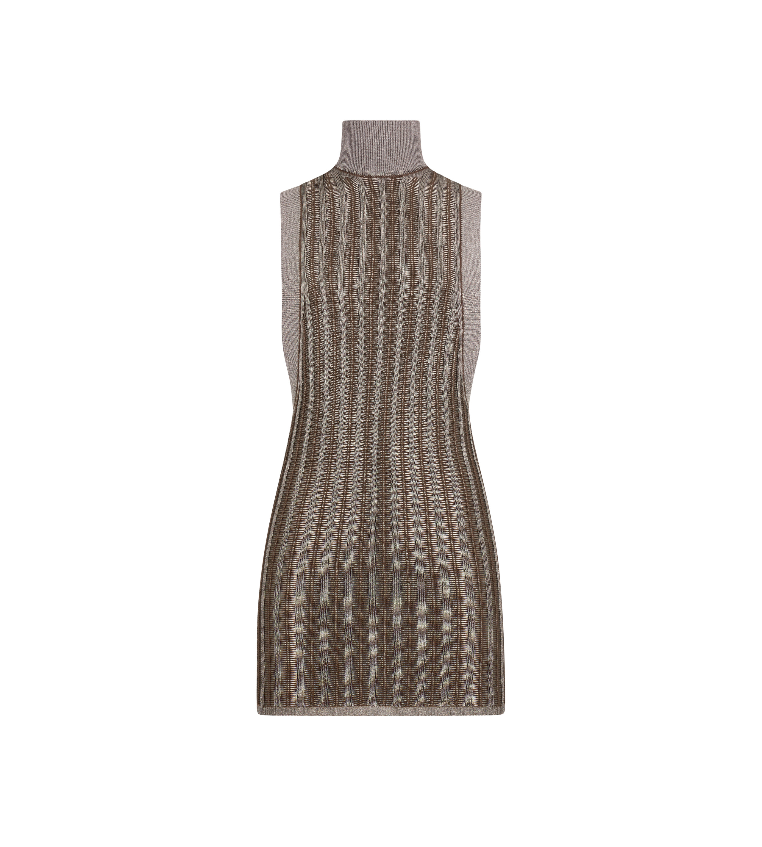 - TURTLENECK KNITTED COCKTAIL DRESS - MINI LENGTH - RIBBED NECKLINE AND ARMHOLES - INVISIBLE ZIP - CRAFTED IN SLINKY VISCOSE AND WOOL METAL RIB - GAUGE 12 - 60% VIRGIN WOOL 28% VISCOSE 12% METALLIC FIBER