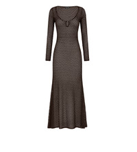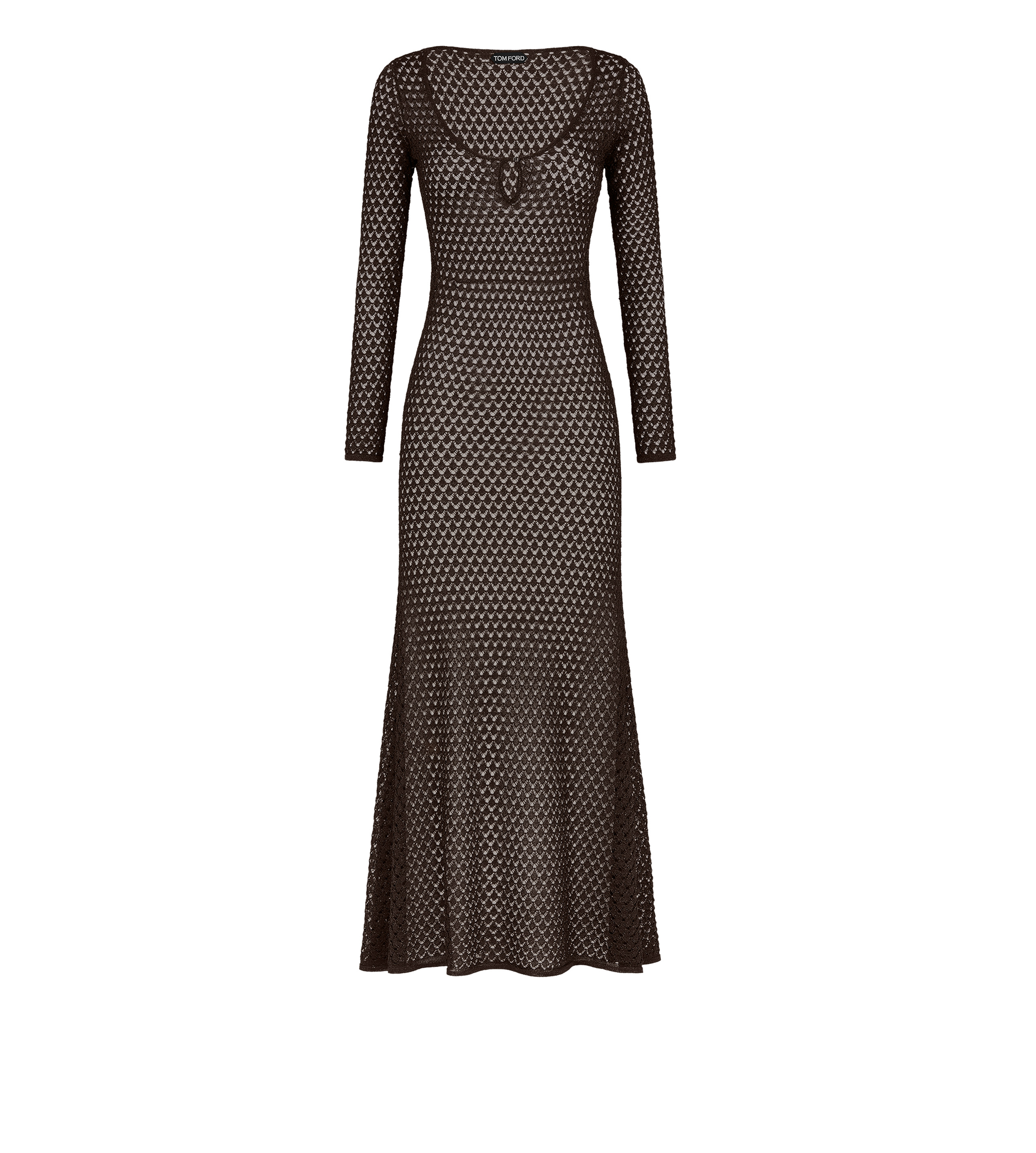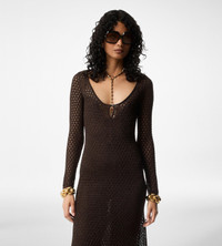 - SCOOP NECK KNITTED MAXI DRESS - ANKLE LENGTH - TONAL DETACHABLE SLIP DRESS - MOTHER OF PEARL BUTTON - CRAFTED IN OPENWORK LUREX - GAUGE 14 - 57% VISCOSE 28% POLYESTER 15% METALLIC FIBERS