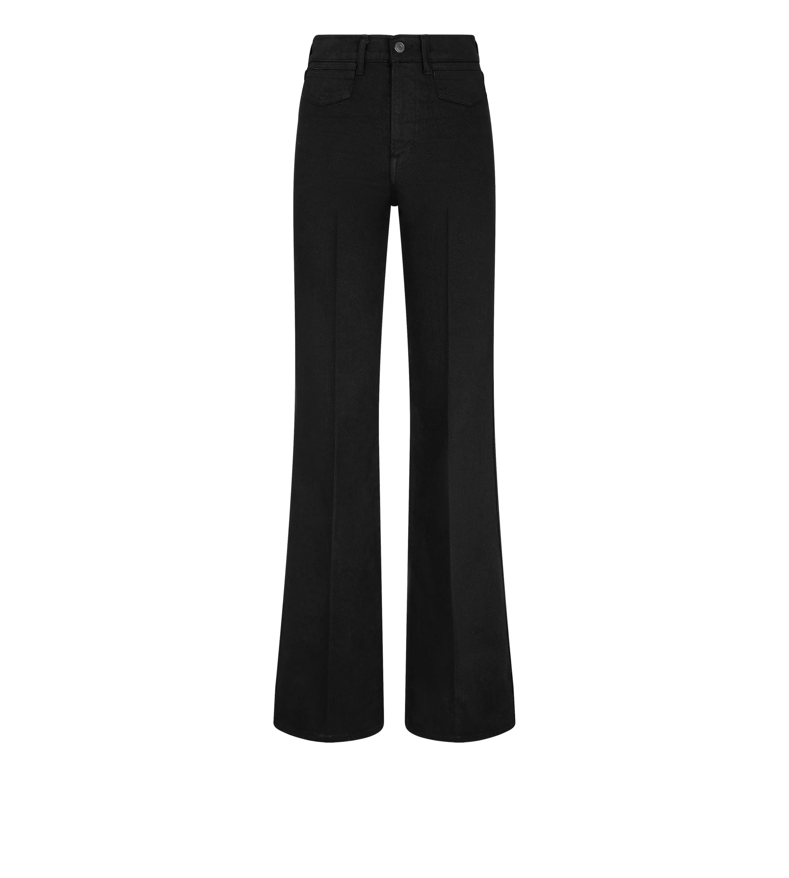 - WIDE FLARED PANTS - TOM FORD SIGNATURE TUCK BUTTON CLOSURE - PATCH POCKETS - TOM FORD EMBOSSED ALCANTRA LABEL ON BACK POCKET - ANTIQUE SILVER HARDWARE - TF LOGO EMBROIDERY DETAIL - CRAFTED IN STRETCH TWILL DENIM - 99% COTTON 1% ELASTANE - MADE IN USA