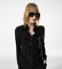 - MILITARY SHIRT WITH FRONT POCKETS - LONG SLEEVE - SLIGHTLY FITTED SHAPE ACHIEVED WITH FRONT AND BACK DARTS - PLEATED PATCH POCKETS WITH FLAP ON THE FRONT - BACK YOKE CUT - SELF-FABRIC EPAULETTES ON THE SHOULDER - MOTHER OF PEARL BUTTONS FOR FRONT CLOSING, CUFFS, AND EPAULETTES - BARREL CUFFS - CRAFTED IN SILK CREPE DE CHINE - 100% SILK