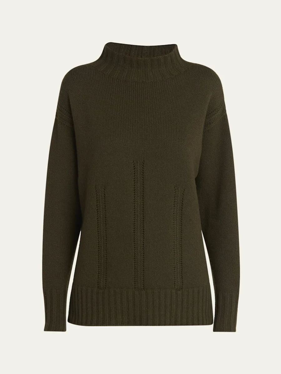 TOM FORD sweater featuring pointelle knit stripes and shoulder details Mock neckline Long sleeves Loose fit Ribbed cuffs and hem Pullover style Wool/cotton Made in Italy Proposition 65 warning for California residents Online Inquiries: BGS21_BA4L3| Store Inquiries: #5034276