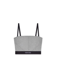 - STRETCH TOP - STRAIGHT NECKLINE - ZIG ZAG STITCHING DETAILINGS - ELASTICATED BAND WITH TOM FORD JACQUARD LABEL - ELASTIC ADJUSTABLE STRAPS - GOLD METAL HARDWARE - CRAFTED IN MODAL JERSEY - 97% MODAL 3% ELASTANE