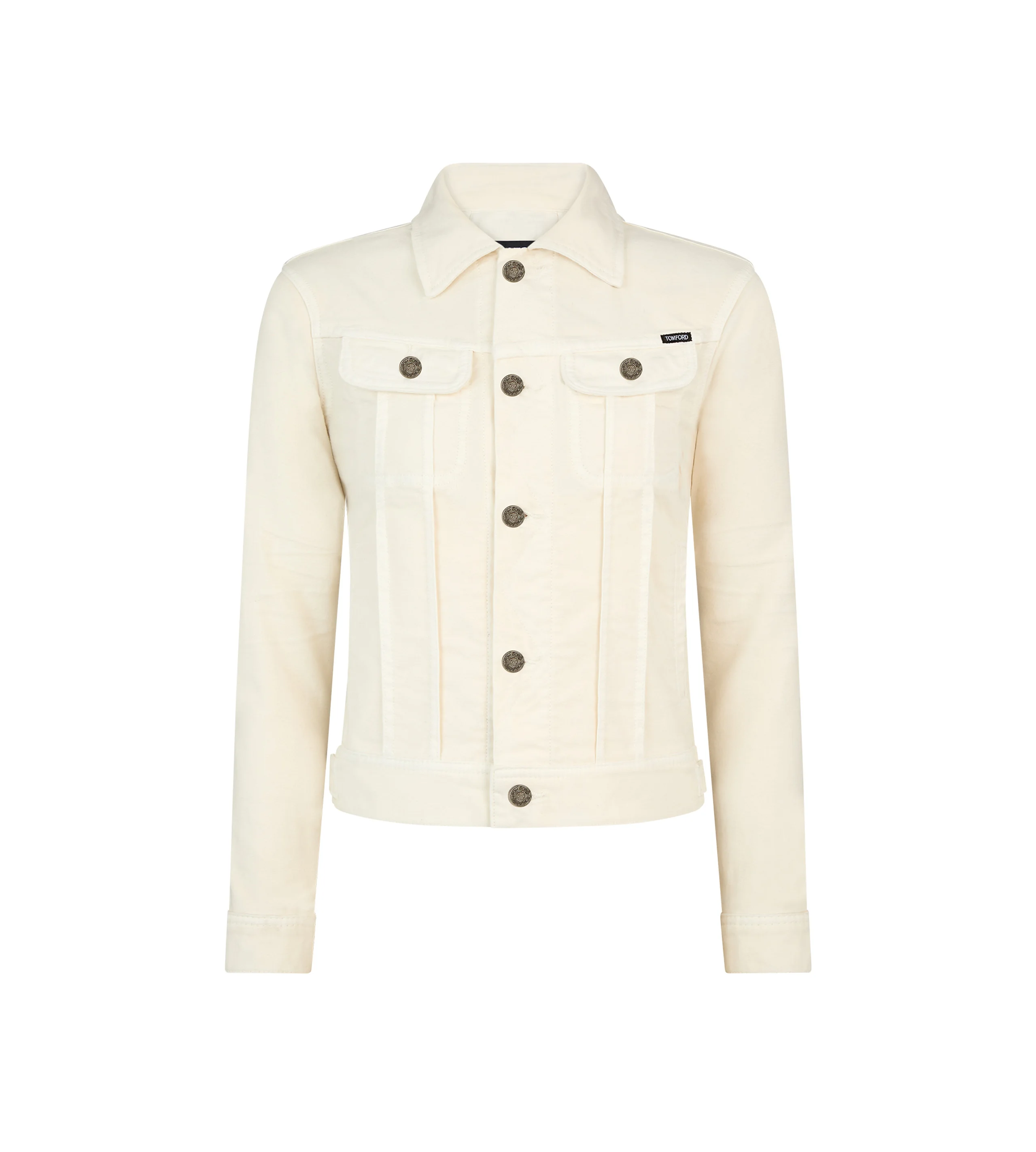 - DENIM JACKET - PATCH FLAP CHEST POCKETS - SIDE POCKETS - BUTTONED CUFFS - TOM FORD SIGNATURE TUCK BUTTONS ALONG FRONT OPENING, POCKETS, CUFFS AND SIDE ADJUSTERS - TOM FORD EMBOSSED ALCANTARA LABEL ON THE BACK - ANTIQUE SILVER HARDWARE - CRAFTED IN MOLESKIN DENIM - 98% COTTON 2% POLYURETHANE - MADE IN USA