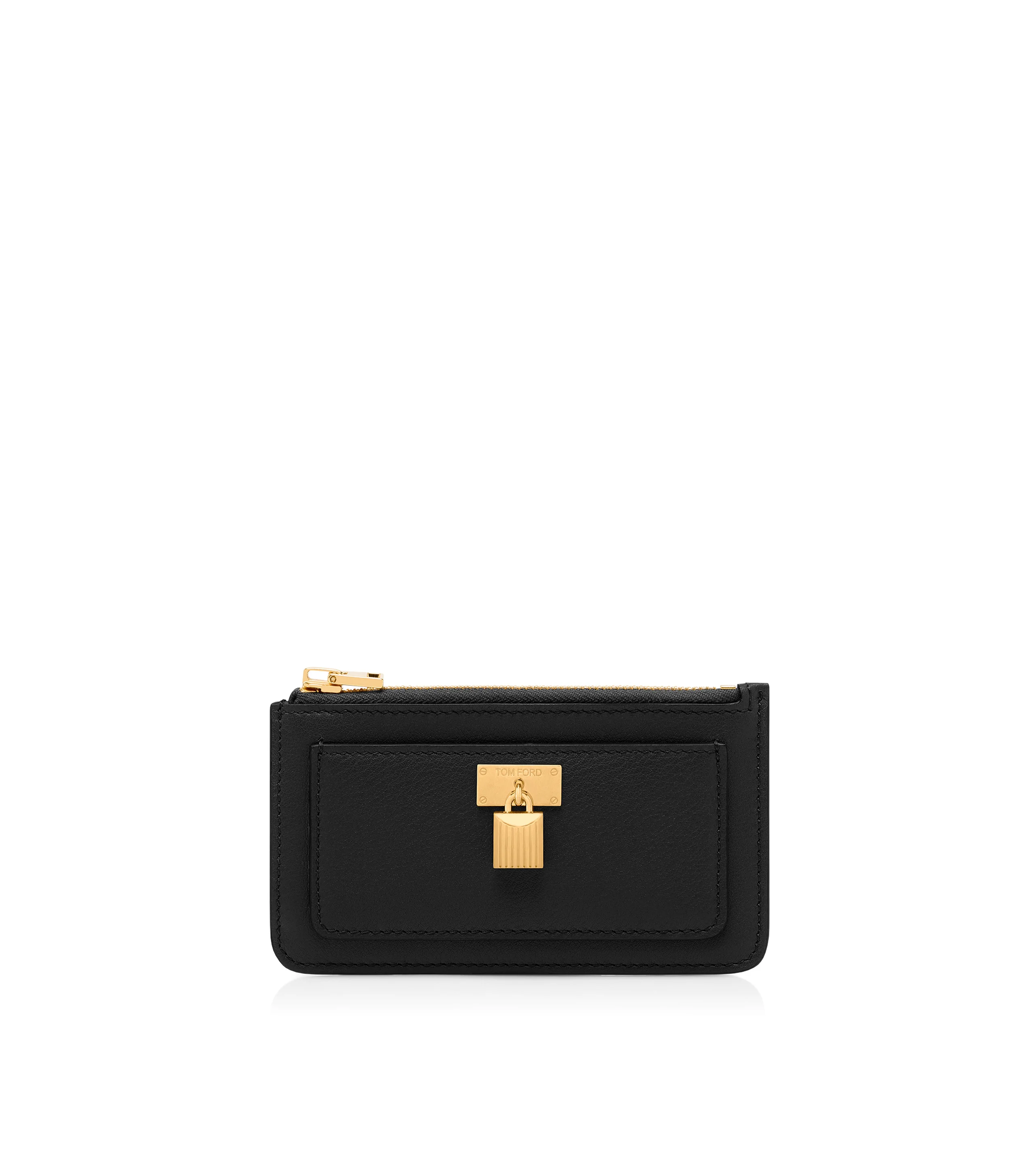 NATURAL GRAIN LEATHER PADLOCK ZIPPED CARD HOLDER