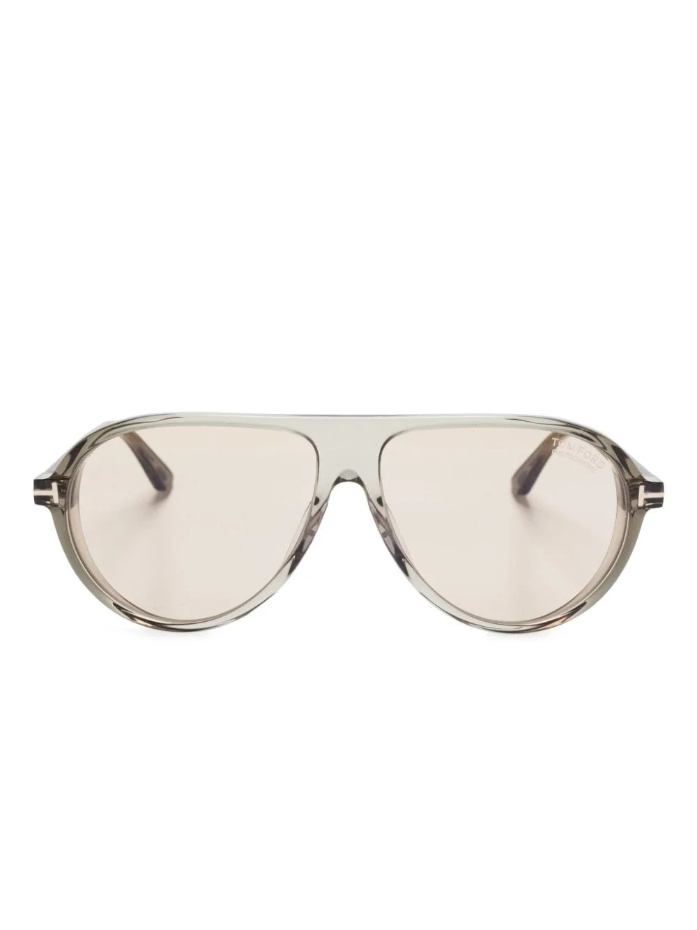 navigator-frame sunglasses Highlights - Light grey - Acetate - Transparent design - Navigator frame - Uv-protective lenses - Brown tinted lenses - Logo lens decal - Straight arms - Curved tips - These glasses come with a protective case. Made in Italy Composition Acetate 100% SIZE & FIT Measurement Arm Length 5.51 in(14 cm) Bridge Width 0.51 in(1.3 cm) Lens Diameter 2.36 in(6 cm) Total Width 5.74 in(14.6 cm)