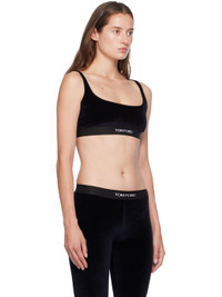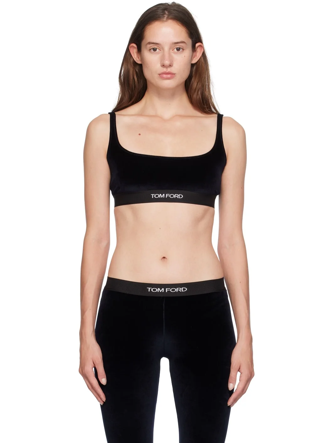 Triacetate- and polyester-blend velour bra. · Scoop neck · Jacquard logo at elasticized hem · Fixed shoulder straps · Full stretch mesh lining Supplier color: Midnight blue Body: 72% triacetate, 28% polyester. Trim: 82% polyester, 9% elastane, 9% polyamide. Lining: 82% polyamide, 18% elastane. Made in Bosnia And Herzegowina 242076F073001