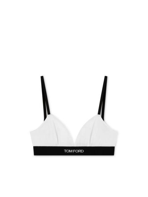 - STRETCH BRA - ELASTICATED BAND WITH TOM FORD JACQUARD LABEL - ELASTIC ADJUSTABLE STRAPS - CENTRE BACK GOLD METAL LOGOED HOOK FOR CLOSURE - GOLD METAL HARDWARE - CRAFTED IN MODAL JERSEY - 97% MODAL 3% ELASTANE