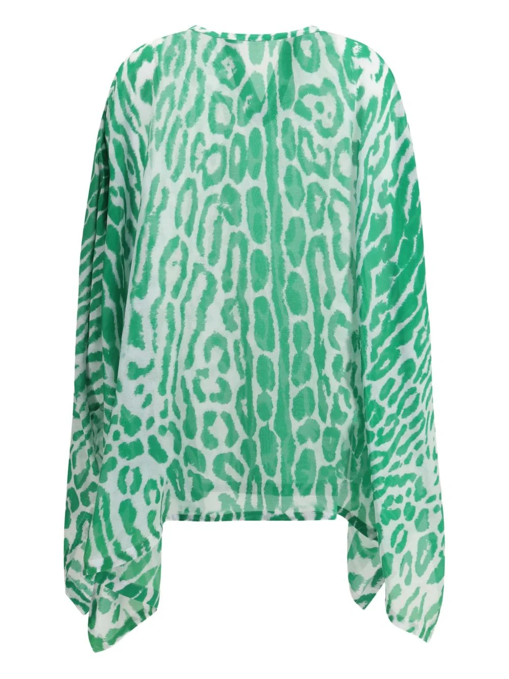leopard print silk top Highlights - Green - Leopard print - Short sleeves - Asymmetrical hem Made in Italy Composition Cotton 78%, Silk 22% Washing instructions Read Manufacturer Guidelines