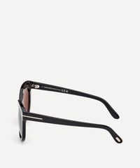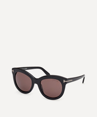 DETAILS Butterfly sunglasses Black acetate 100% UV protection Metal T inlays Made in Italy COMPOSITION & SIZE Acetate; Metal Arm: 14cm, Bridge: 2.1cm, Lens: 5.3cm