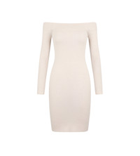 - OFF THE SHOULDER KNITTED DRESS - ABOVE THE KNEE LENGTH - RIBBED CUFFS - CRAFTED IN FULL NEEDLE FINE CASHMERE SILK - GAUGE 18 - 70% CASHMERE 30% SILK