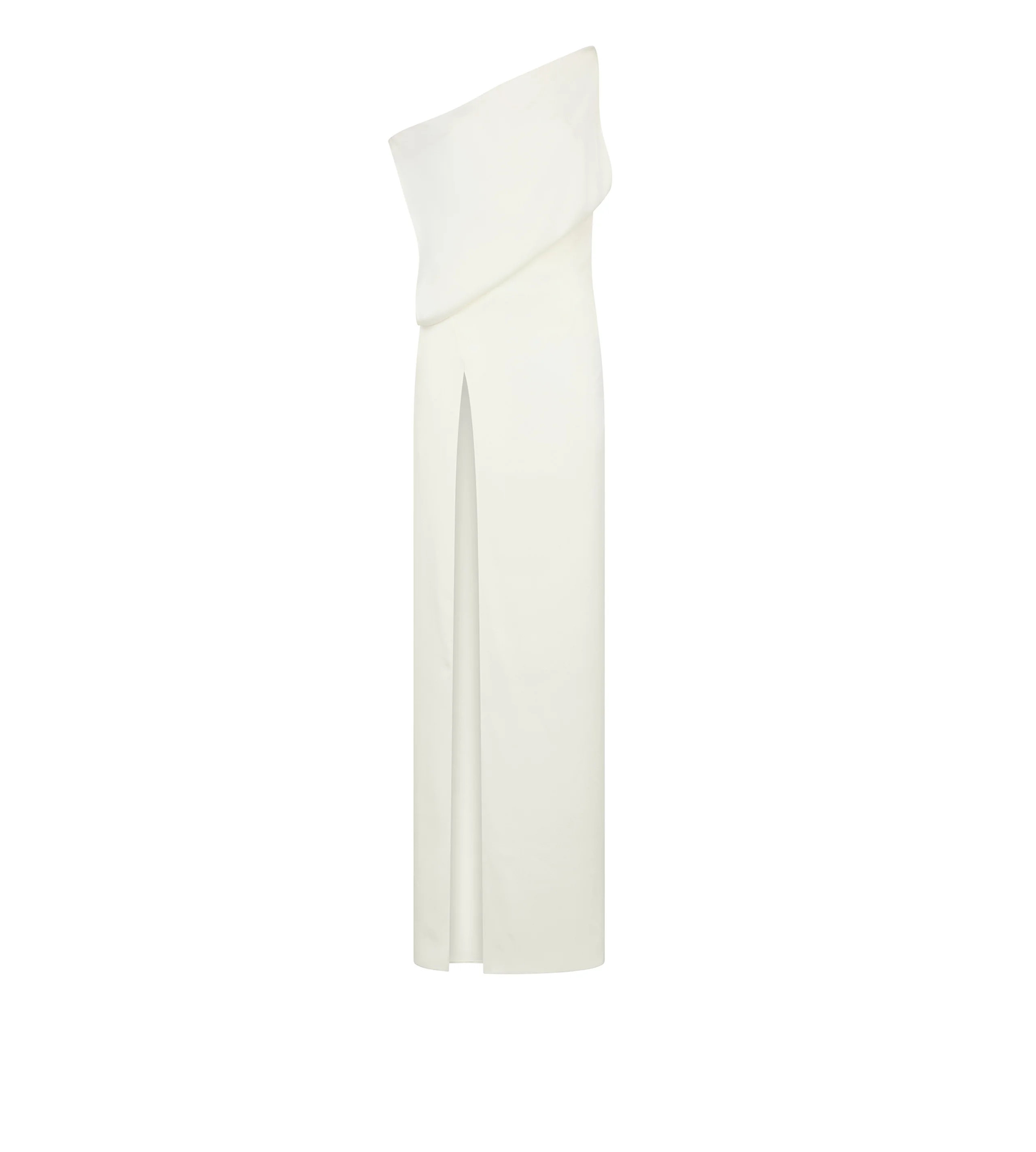 OFF THE SHOULDER EVENING DRESS WITH SIDE SLIT
