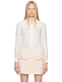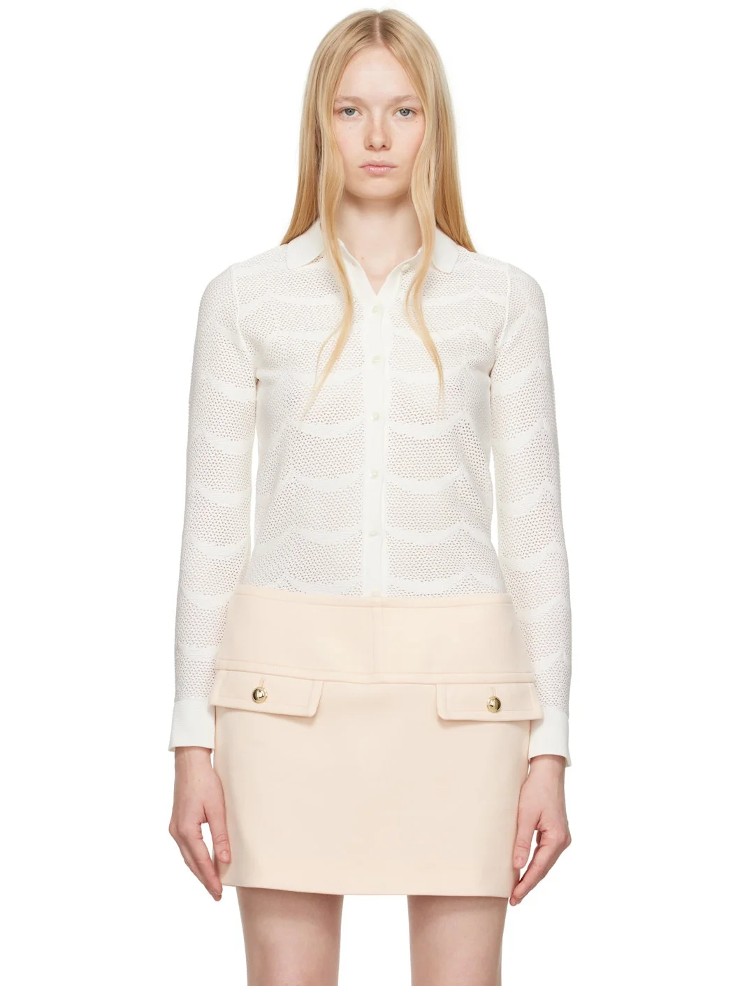 Open-knit cotton- and silk-blend shirt. Jacquard stripes throughout. · Spread collar · Button closure · Buttoned barrel cuffs Supplier color: White 57% cotton, 43% silk. Made in Italy 251076F109000