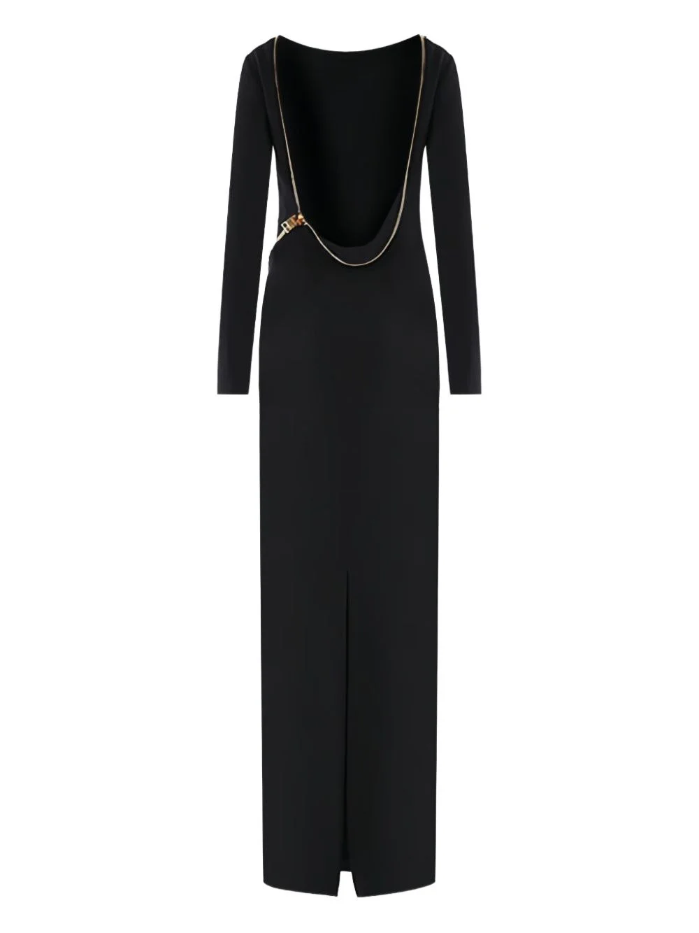 open-back side-zip maxi dress Highlights - Black - Boat neckline - Asymmetric neckline - Open back - Long sleeves - Side-zip detail - Back central slit Made in Italy Composition Silk 100% Washing instructions Read Manufacturer Guidelines