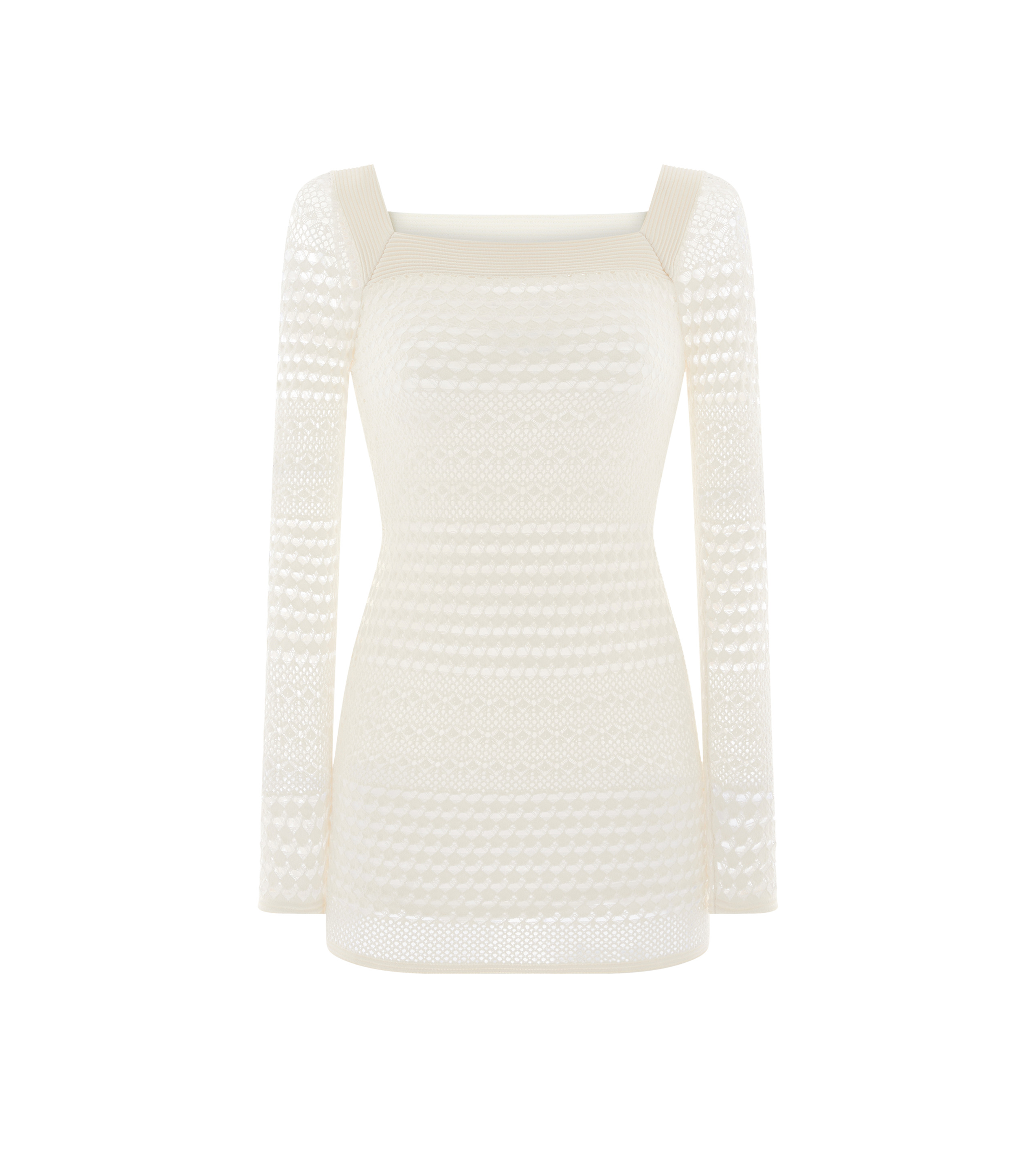 - SQUARE NECK KNITTED MINI DRESS - OTTOMAN RIB DETAIL ALONG NECKLINE - TONAL DETACHABLE SLIP DRESS - CRAFTED IN OPENWORK STRETCH VISCOSE - GAUGE 14 - 70% VISCOSE 24% POLYESTER 6% NYLON