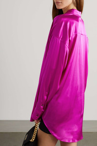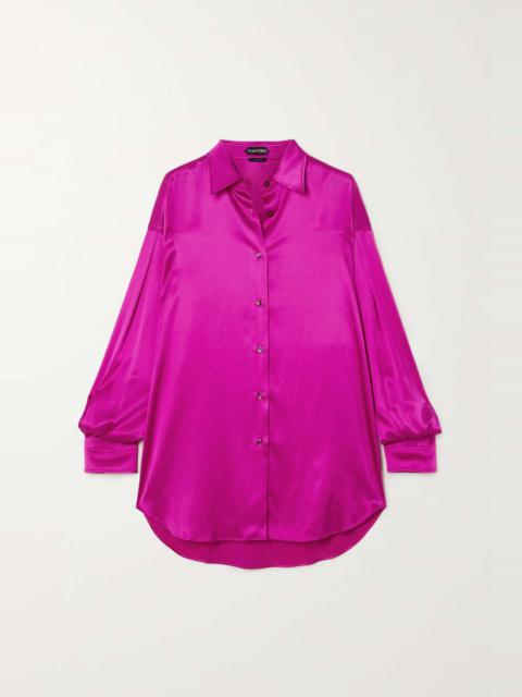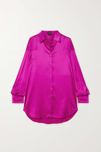 EDITORS'NOTES There's nothing quite like a TOM FORD shirt to leave you feeling strong and sensual. Modeled on the Spring '22 runway, this bright pink one embodies the designer's mantra this season: simple in cut, but not in impact. It's made from glossy silk and Lyocell-blend satin and has an oversized silhouette. SIZE & FIT - Fits true to size, take your normal size - Designed for an oversized fit, cut to be worn very loose - Lightweight, fluid, slightly stretchy fabric - Model is 180cm/ 5’11” and is wearing an IT 40 DETAILS & CARE - Hot-pink silk and Lyocell-blend satin - Button fastenings through front - 94% silk, 6% Lyocell - Dry clean - Mother-of-pearl: Indonesia