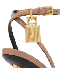 - POINTY TOE SHAPE - SIGNATURE PADLOCK METAL HARDWARE - 105 MM ICONIC METAL SPIKE HEEL - ADJUSTABLE BUCKLE ANKLE STRAP - BUCKLES WITH ENGRAVED TOM FORD LOGO - LINING: BLACK LEATHER - INSOLE: BLACK LEATHER WITH GOLD OR SILVER EMBOSSED TOM FORD - SOLE: LEATHER