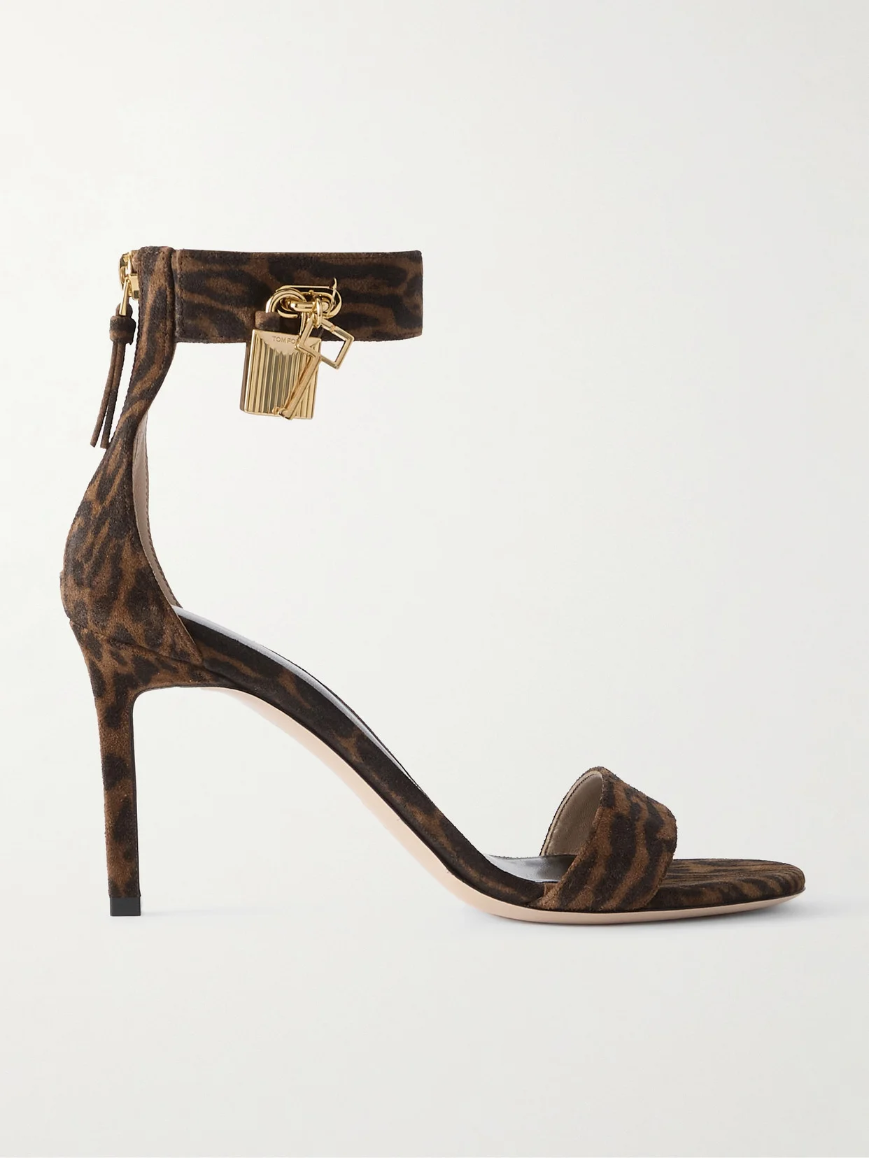TOM FORD's sandals are named for the gold-tone 'Padlock' and key embellishments adorning the ankle strap. Set on a 85mm stiletto heel, they've been made in Italy from leopard-print suede and have round open toes.