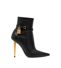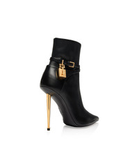 - POINTY TOE SHAPE - SIGNATURE PADLOCK METAL HARDWARE - 105 MM ICONIC METAL SPIKE HEEL - ADJUSTABLE BUCKLE ANKLE STRAP - BUCKLES WITH ENGRAVED TOM FORD LOGO - LATERAL ZIP - LINING: BLACK LEATHER - INSOLE: BLACK LEATHER WITH GOLD EMBOSSED TOM FORD - SOLE: LEATHER - 100% CALFSKIN