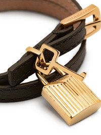 padlock leather bracelet Highlights - Brown - Gold-tone padlock charm - Key charm - Leather strap - Double wrap design - Clasp fastening Made in Italy SIZE & FIT Model measurements Height 5 ft 11 in(1.8 m) Bust/Chest 32.67 in(83 cm) Hips 36.22 in(92 cm) Waist 24.4 in(62 cm) Measurement Minimum Length 11.41 in(29 cm) PENDANT LENGTH 1.18 in(3 cm) PENDANT WIDTH 0.55 in(1.4 cm) TOTAL LENGTH 14.17 in(36 cm) WIDTH 0.19 in(0.5 cm)