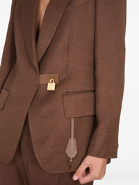 padlock-detail blazer Highlights - Brown - Padlock detail - Flap pockets - Button fastening - Long sleeves - Peak lapels Made in Italy Composition Viscose 98%, Polyamide 2% Washing instructions Read Manufacturer Guidelines