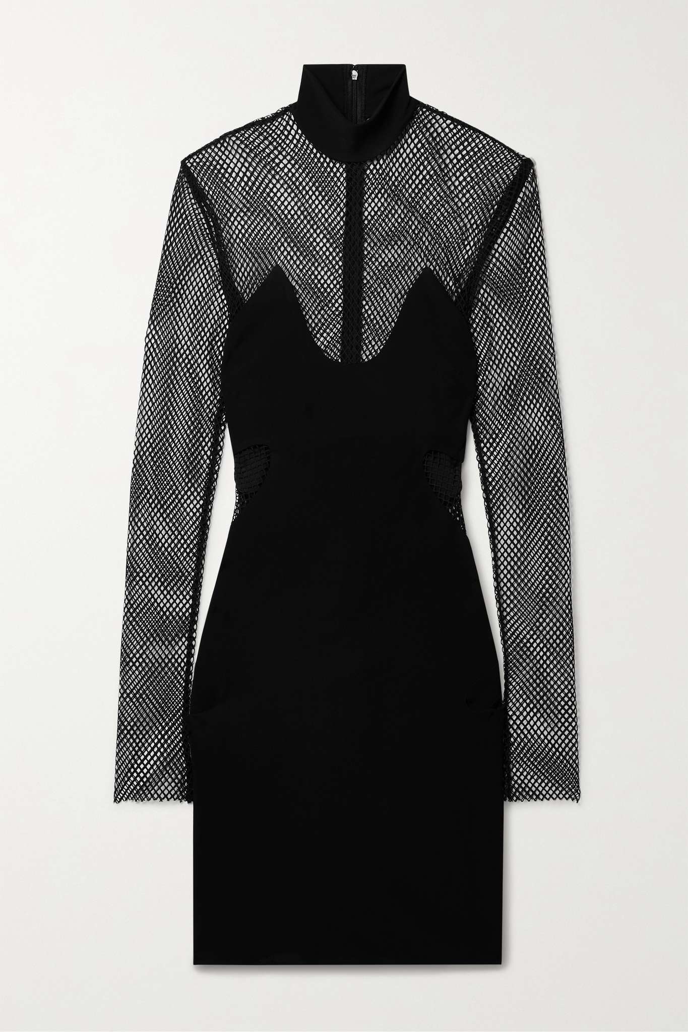 EDITORS'NOTES TOM FORD's mini dress is made from strategically placed panels of stretch-crepe and mesh that create a daring, skin-baring design. It fits slim and has a mock neckline. Style yours with metallic accessories. SIZE & FIT - Fits true to size, take your normal size - Designed for a close fit - Lightweight, stretchy fabric - Model is 180cm/ 5’11” and is wearing an IT 40 DETAILS & CARE - Black stretch-crepe and mesh - Concealed zip fastening along back - Fabric1: 100% viscose; fabric2: 100% polyamide; lining: 80% polyamide, 20% elastane - Dry clean