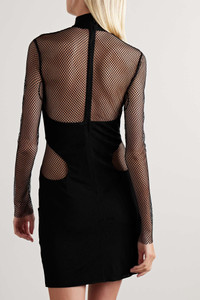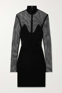 Paneled stretch-crepe and mesh mini dress