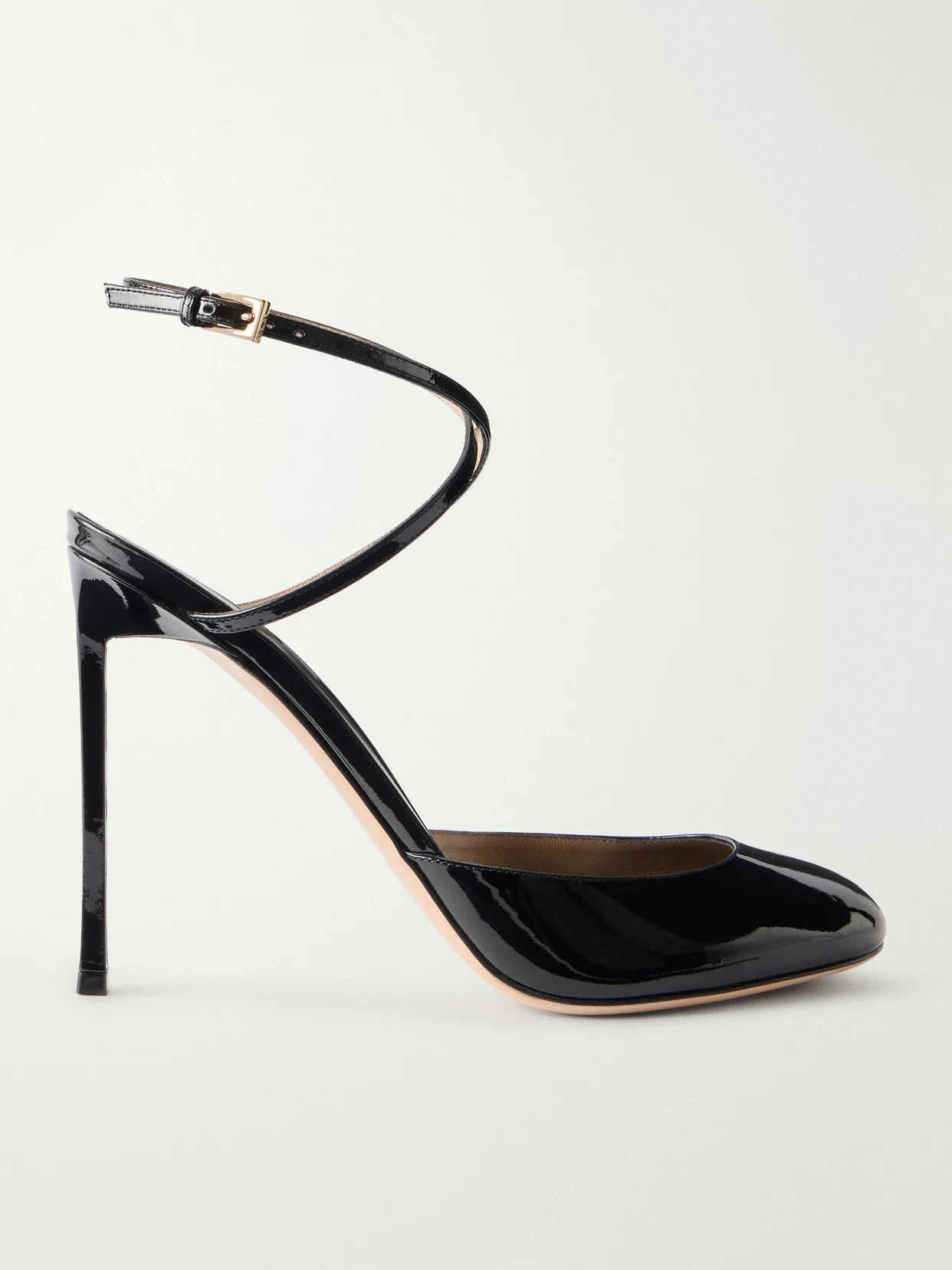 TOM FORD's pumps are defined by their clean lines and precise construction. Made from glossy patent leather, they have a round toe, crossover straps and rest on slender stiletto heels.