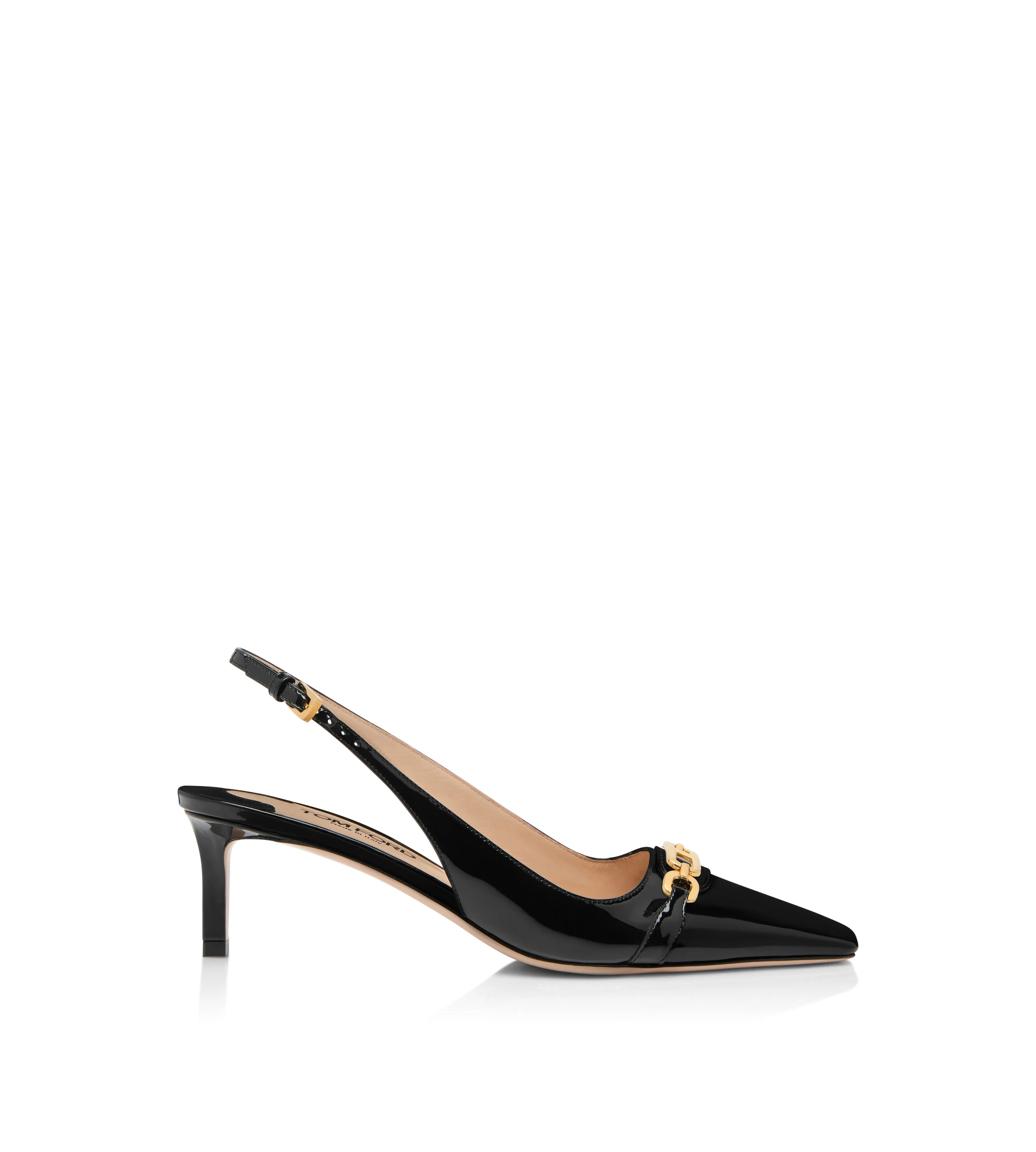 - SQUARE TOE SHAPE - 55 MM STILETTO HEEL - DECORATED WITH METAL WHITNEY T SHAPED SIGNATURE ON THE TOE - BUCKLE FASTENING SLINGBACK STRAP - LINING: NUDE LEATHER - INSOLE: NUDE LEATHER WITH BLACK HOT-STAMPED LOGO - SOLE: LEATHER