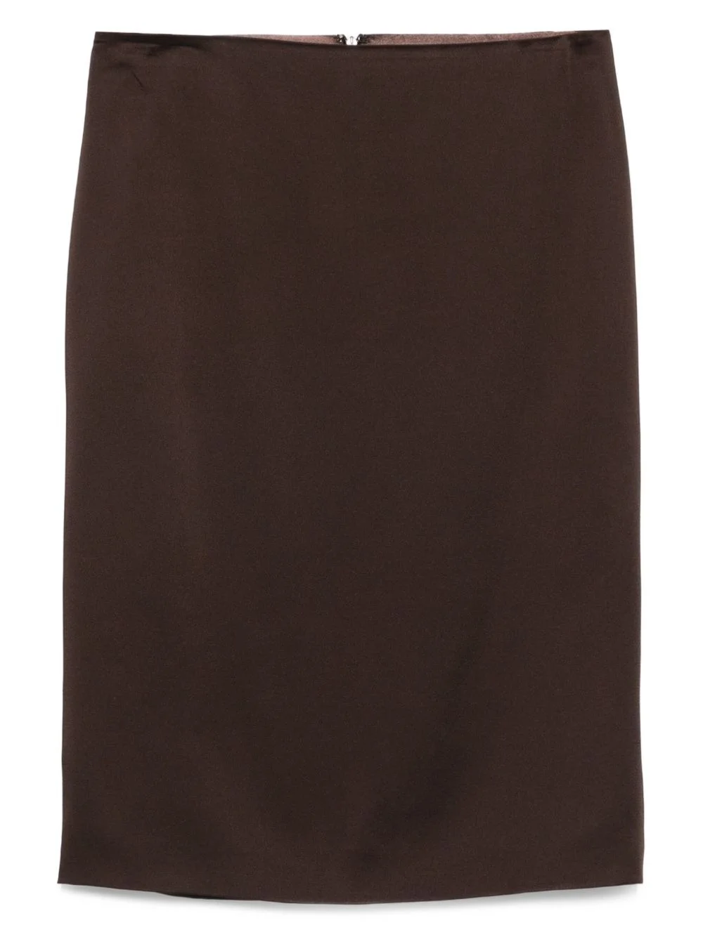 silk pencil skirt Highlights - Brown - Pencil design - Rear zip fastening Made in Italy Composition Outer: Acetate 73%, Viscose 27% Lining: Silk 100% SIZE & FIT Model measurements Height 5 ft 10 in(1.78 m) Bust/Chest 33.46 in(85 cm) Hips 36.22 in(92 cm) Waist 23.22 in(59 cm) FittingInformation This midi-length skirt is intended to be worn just below the waist The vented hem offers movement at the rear Made from a midweight non-stretch fabric This piece fits large – take one size down Washing instructions Dry Clean Only