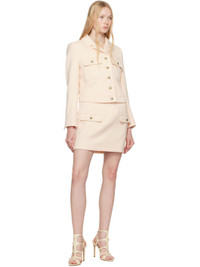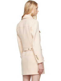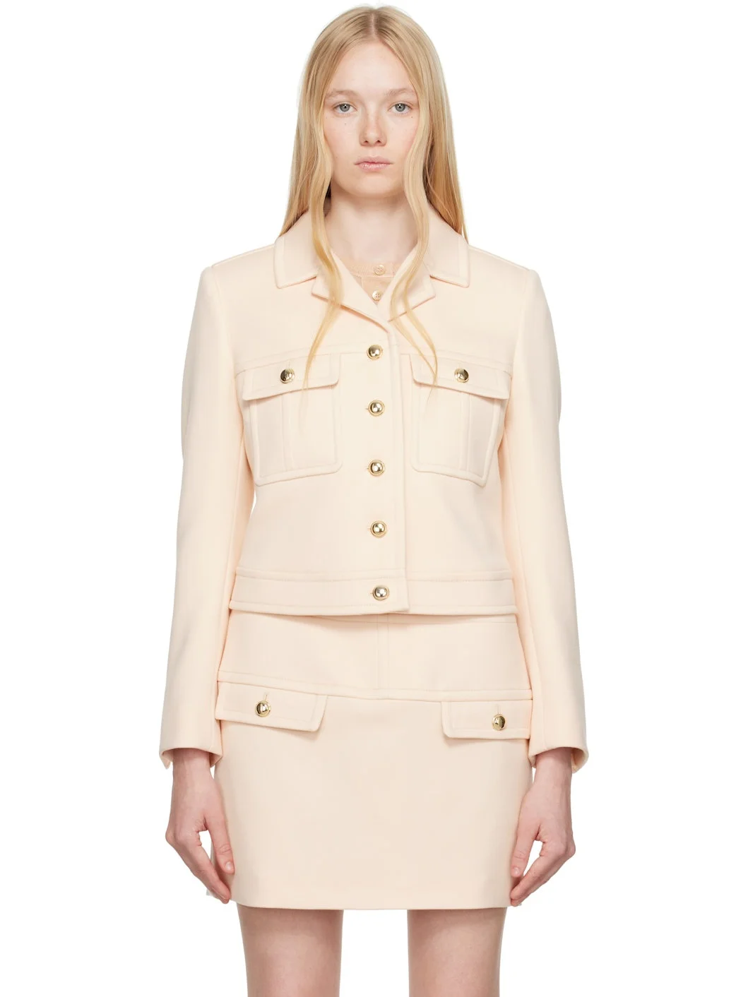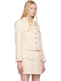 Stretch virgin wool barathea jacket. · Notched lapel · Button closure · Flap pockets · Cropped hem · Padded shoulders · Buttoned surgeon's cuffs · Adjustable button tabs at back hem · Full satin lining Supplier color: Almost blush Body: 98% virgin wool, 2% elastane. Lining 1: 56% cotton, 46% viscose. Lining 2: 61% cupro, 39% viscose. Made in Italy 251076F063001