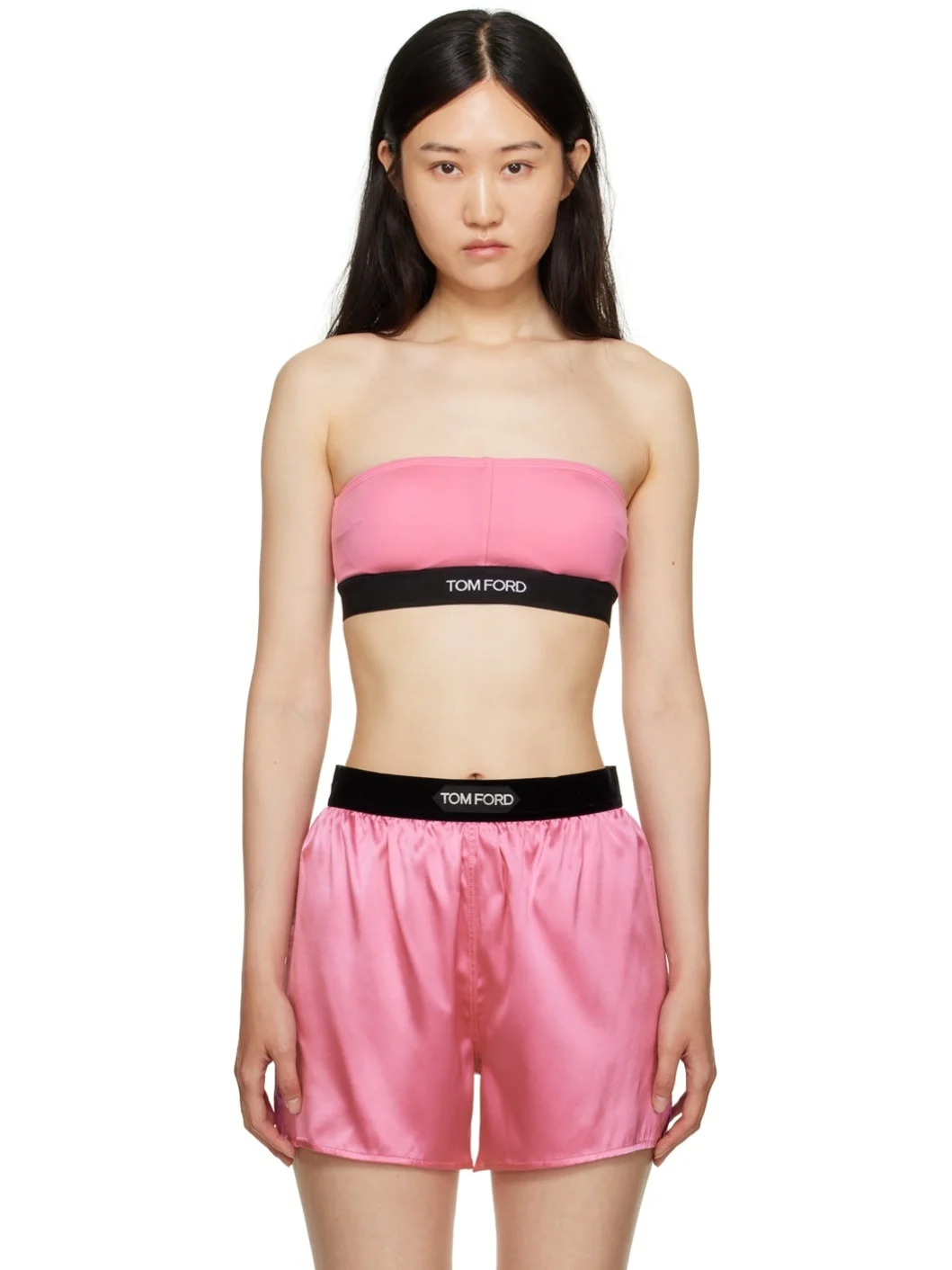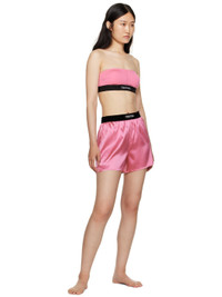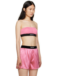 Stretch jersey bandeau-style bra. · Straight neck · Removable padding at cups · Jacquard logo at elasticized hem · Boning at side seams · Partial stretch jersey lining Supplier color: Rosebloom Body: 97% modal, 3% elastane. Trim: 82% polyester, 9% elastane, 9% polyamide. Made in Italy 232076F073001