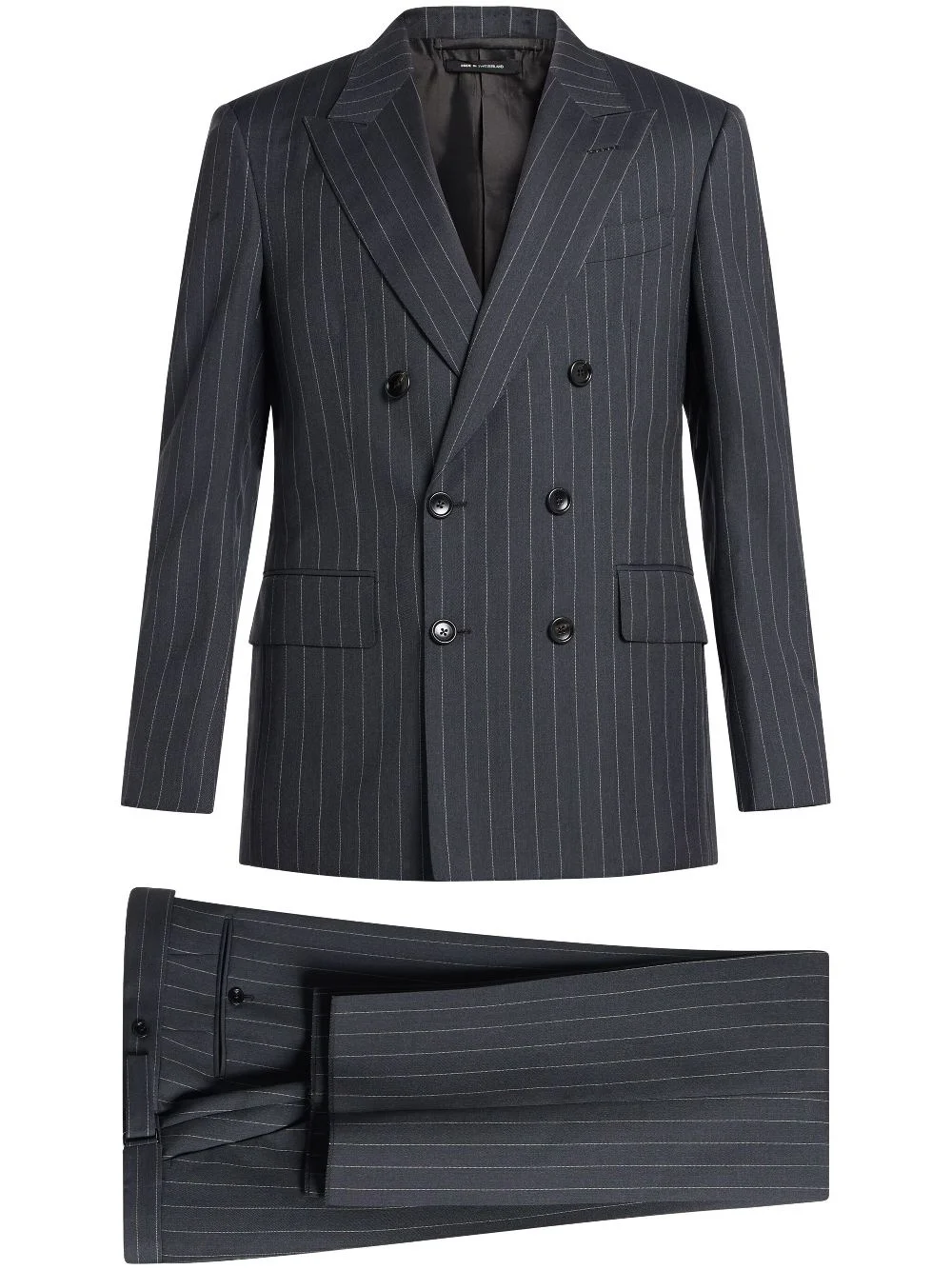 pinstriped suit Highlights - Dark grey - Double-breasted button fastening - Concealed front fastening - Two front flap pockets - When buying this unisex item, keep in mind that it is graded in standard men's sizing. Made in Italy Composition Fabric 100%