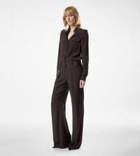 - PLEATED WIDE LEG PANTS - SIDE SLANTED POCKETS AT THE FRONT WITH FINE BAR TACKS - PLEATS ON THE FRONT THAT CREATE VOLUME - SIDE ADJUSTERS - PINTUCK AT THE CENTRE OF BACK AND FRONT LEG - MOTHER OF PEARL BUTTONS - CRAFTED IN SILK CREPE DE CHINE - 100% SILK