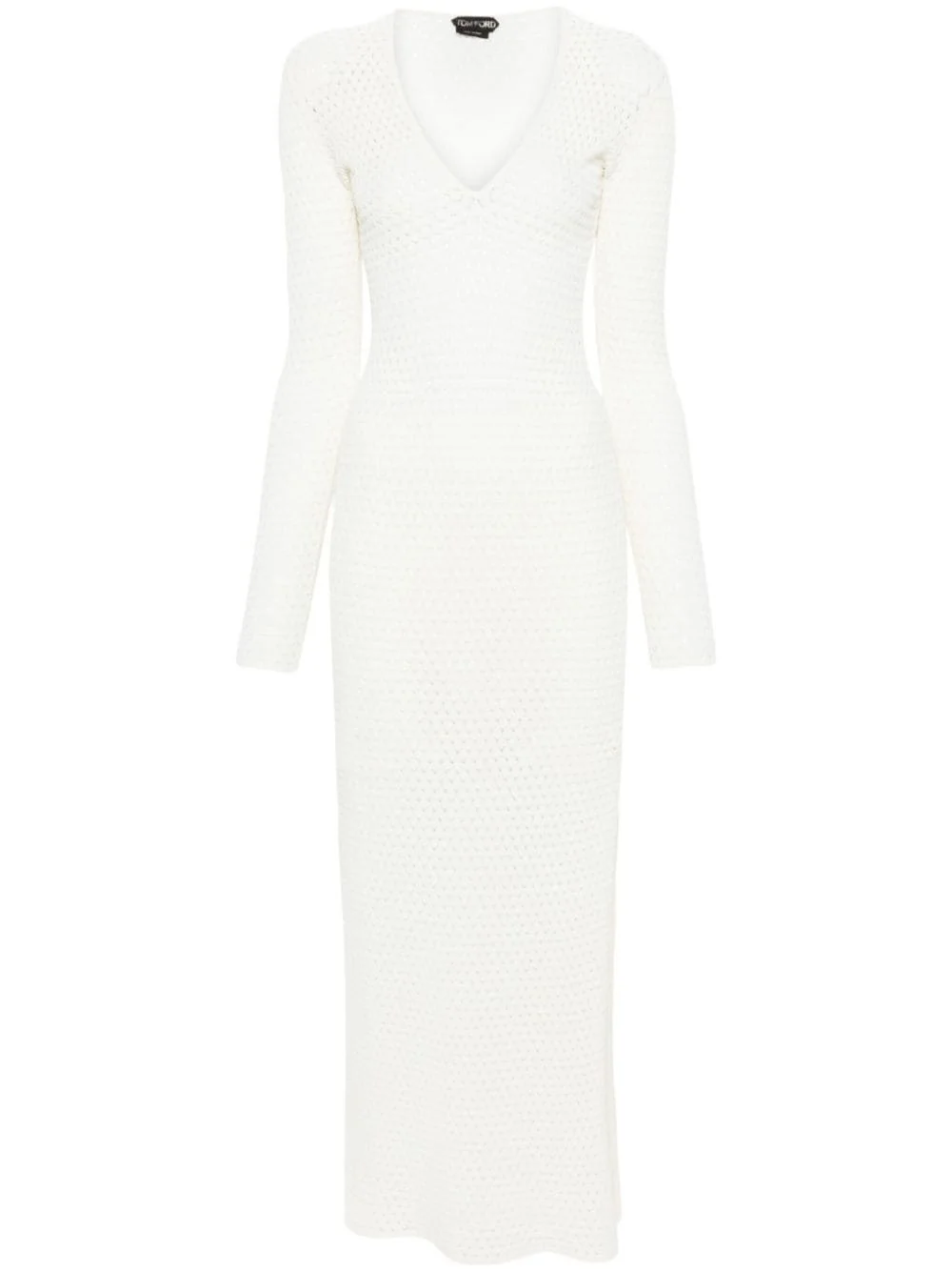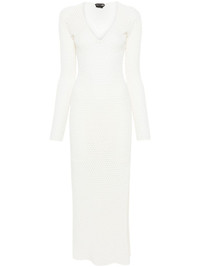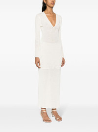 pointelle-knit maxi dress Highlights - Off-white - Stretch-design - Pointelle knit - V-neck - Long sleeves - Slip silhouette - Side slit - Straight hem - Ankle-length - Internal slip dress Made in Italy Composition Lining: Viscose 100% Outer: Viscose 75%, Polyester 25% SIZE & FIT Model measurements Height 5 ft 11 in(1.8 m) Bust/Chest 32.67 in(83 cm) Hips 35.82 in(91 cm) Waist 24.8 in(63 cm) Measurement SLEEVE LENGTH 23.62 in(60 cm) HIPS 32.67 in(83 cm) LENGTH 49.21 in(125 cm) WAIST 27.55 in(70 cm) FittingInformation Designed for a close fit throughout The detachable slip sits just away from the body, offering a close yet comfortable fit Made with a midweight knit, this piece offers some stretch This piece fits true to size – take your usual size Washing instructions Dry Clean Only