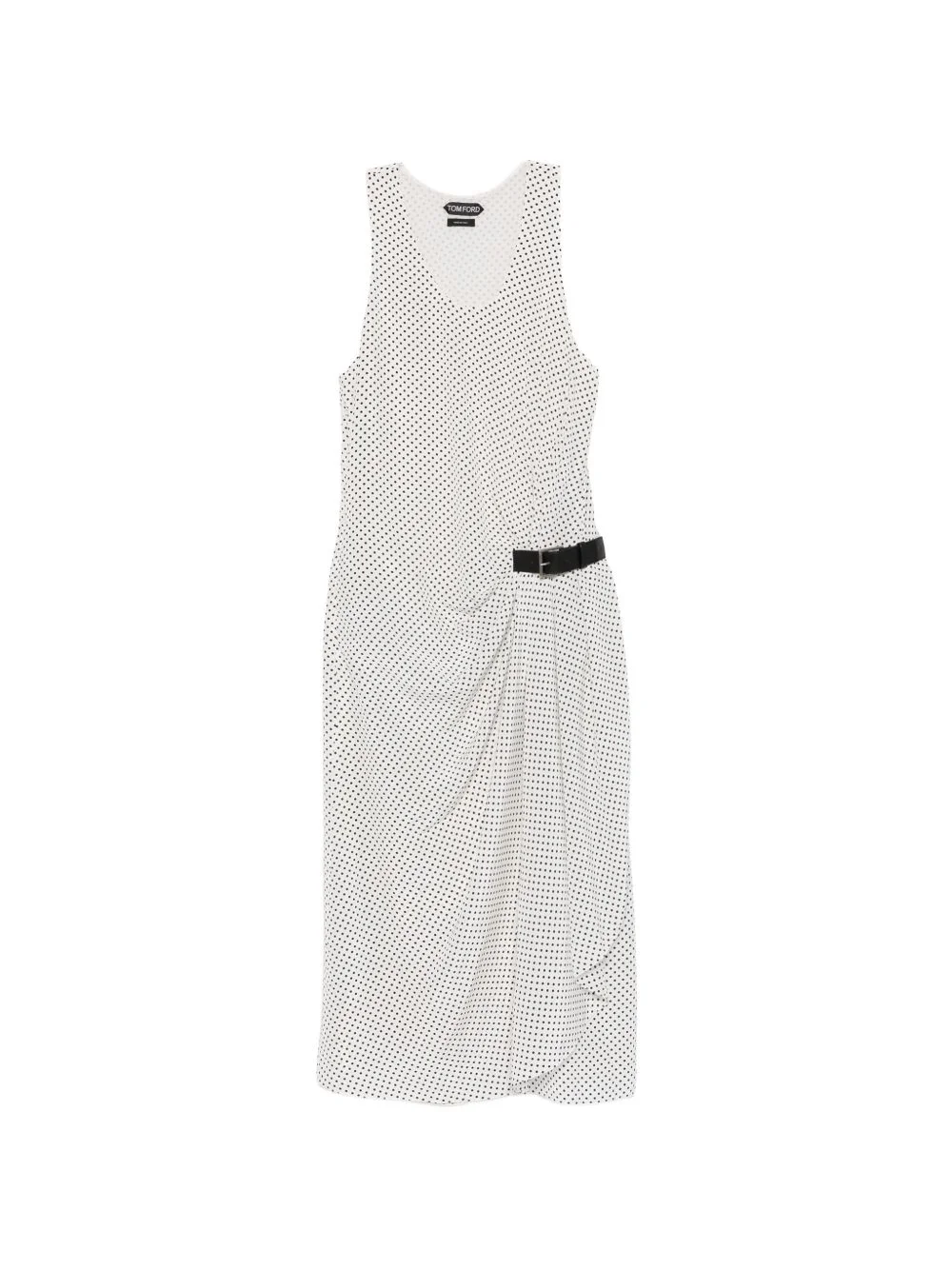 polka dot belted midi dress Highlights - White - Polka dot print - Sleeveless - Belt Made in Italy Composition Outer: Silk 100%, Lamb Skin 100% Lining: Silk 100% Washing instructions Read Manufacturer Guidelines