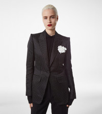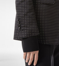 PRODUCT NO: GI3054-FAX1655 This single breasted jacket is crafted in jacquard polka dot duchesse for a lustrous feeling. Composed of a peak lapel, tailored shoulder pads, and a slightly curved sleeve, it features flap and handmade chest pockets with hand-stitched silk bar tacks. Five kissing cuff buttons, one of which is longer, as in all TOM FORD designs, frame the sleeve, while self fabric covered buttons line the front. It is finished with two internal jet pockets, a single vent, and a fully lined canvas construction for a precise, architectural silhouette. Alterations are complimentary in store, whether you purchase online or in person. Contact our Customer Care to reserve your fitting appointment. Composition: 100% silk with lining made of 59% cupro, 41% silk