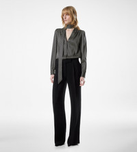 LONG SLEEVE V-NECK LAVALLIERE SILK BLOUSE