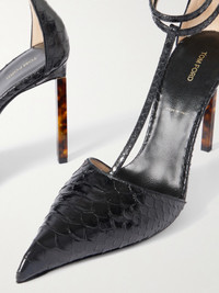 TOM FORD's pumps grounded so many looks on the label's Fall '25 runway, proving just how chic and versatile they are. They've been made in Italy from snake-effect leather with pointed toes and foot-framing T-bar straps. The heels are made from tortoisehell resin and offer 105mm of lift.