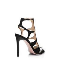 - ROUND TOE SHAPE - 105 MM STILETTO HEEL - BUCKLE FASTENING - INNER SIDE COVERED LEATHER ELASTICS - LINING: NUDE LEATHER - INSOLE: NUDE LEATHER WITH BLACK HOT-STAMPED LOGO - SOLE: LEATHER - 100% CALFSKIN - MADE IN ITALY