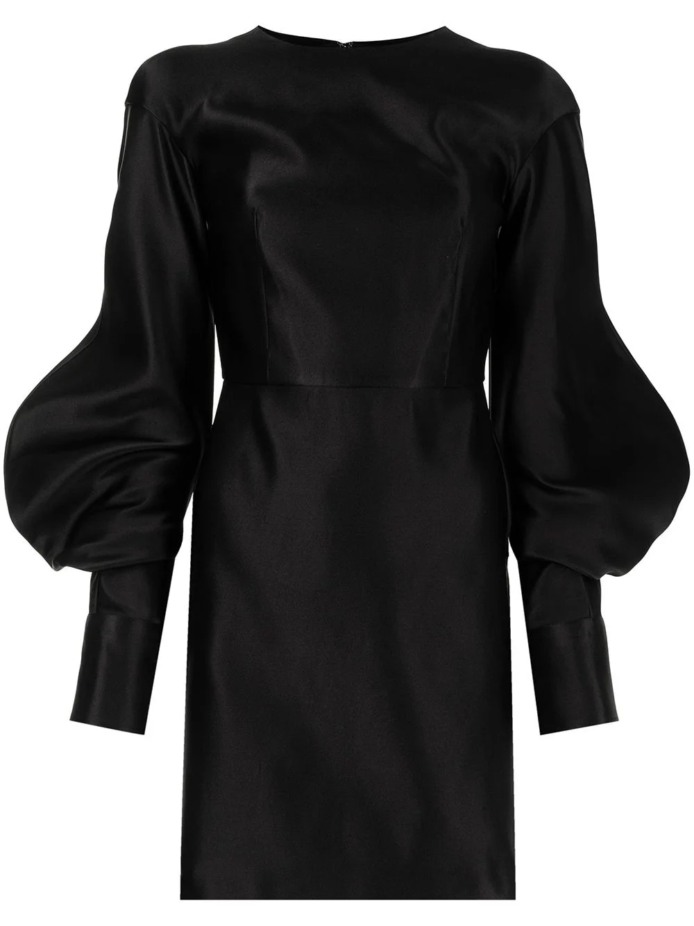 puff-sleeve duchess-silk minidress Tom Ford's minidress is a polished option for evening dressing. Cut from black duchess-silk for a lustrous finish, it's punctuated by voluminous puff sleeves. Made in Italy Composition Silk 100% SIZE & FIT Model measurements Height 5 ft 9 in(1.76 m) Bust/Chest 32.28 in(82 cm) Hips 35.03 in(89 cm) Waist 23.62 in(60 cm) FittingInformation This piece fits true to size. We recommend you get your regular size Cut for a loose fit Made with a mid-weight non-stretch fabric Washing instructions Dry Clean Only