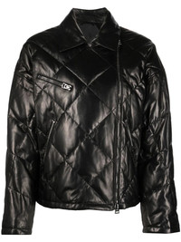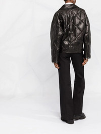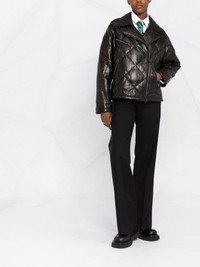 quilted leather jacket Widely renowned for their contemporary approach to leatherwork, this jacket from TOM FORD's AW22 collection boasts all over diamond quilting, complementing its glossy construction. Made in Italy Composition Outer: Calf Leather 100%, Lamb Skin 100% Lining: Feather Down 100%, Cupro 57%, Acetate 50%, Viscose 50%, Polyester 43% SIZE & FIT Model measurements Height 6 ft 0 in(1.84 m) Bust/Chest 36.61 in(93 cm) Hips 36.22 in(92 cm) Waist 29.52 in(75 cm) FittingInformation This piece fits true to size. We recommend you get your regular size Cut for a loose fit Made with a mid-weight non-stretch fabric Washing instructions Specialist Cleaning